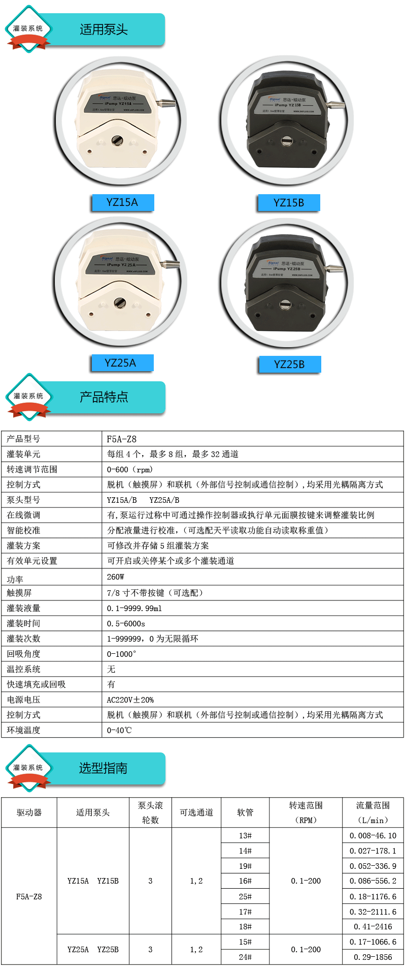 系統由5組基本通道一臺控制器組成,可安裝YZ15、YZ25泵頭