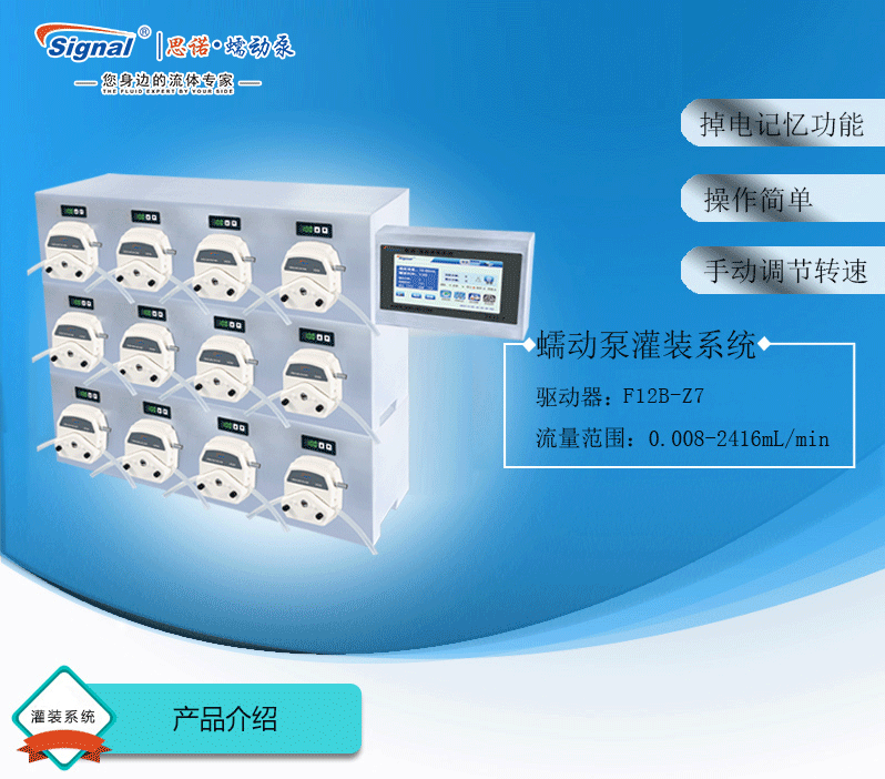 灌裝系統由5組基本通道,通道數量可定制(可擴展至32通道),一臺控制器組成,可安裝YZ15、YZ25泵頭