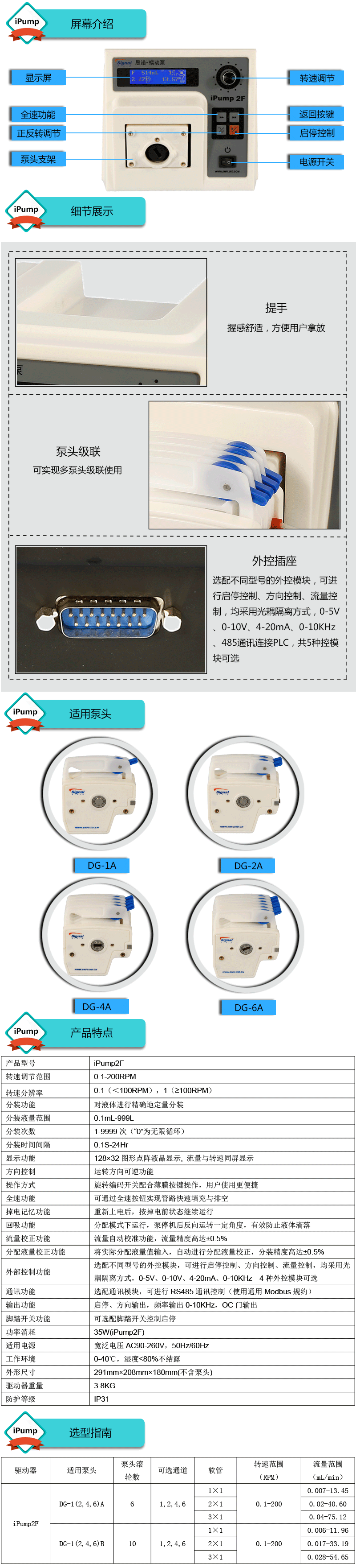 1.流量范圍:0.006-75.12mL/min 2.兩種工作模式,流量模式與分配模式可選 3.具有流量校正、分裝液量校正功能 4.分裝精度高達±0.4%以內 5.采用進口電機驅動芯片,性能好 6.線路板全部三防漆處理,防腐、防潮